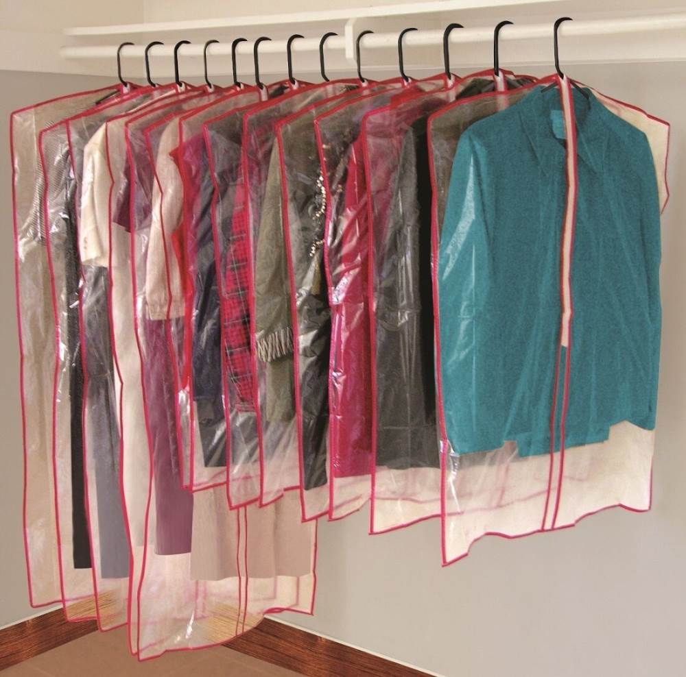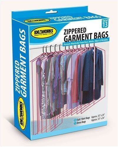 Clear Zippered Garment Bags for Suits and Dresses protective storage Keep your clothes free of dust in your closet or in storage with these Garment Storage Bags. These clear garment bags come in a set of 13 8 suit/shirt bags 5 dress bags. The dress bags measure 53 inch by 23 3/4 inches while the shirt bags measure 35 x 23 3/4 inches. These plastic garment bags zip up the middle so your hangers can fit out the top so you can keep your clothes vertical to minimize wrinkles. The clear plastic material allows you to see the stored garment so you can easily find what you are looking for. You can also use these bags to protect your clothes while travelling on vacation or for work. Garment Storage Bags Features Use to protect fancy clothes while travelling. Clear design allows you to see the stored garment. Zips up the middle so your hangers can fit out the top. Protects against dust. moth damage. and odours. Comes with eight suit/shirt bags and five dress bags. Dress bags measure 53 inch by 23 3/4 inches. The shirt bags measure 35 x 23 3/4 inches. Allows you to hang clothes up to prevent wrinkles. This item is sold in a set of 13 |