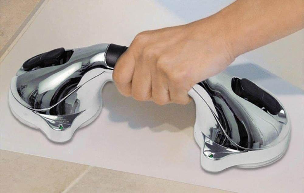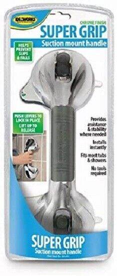 Deluxe Super Grip Suction Mount Chrome Handle Safety Indicators Mobility Safe