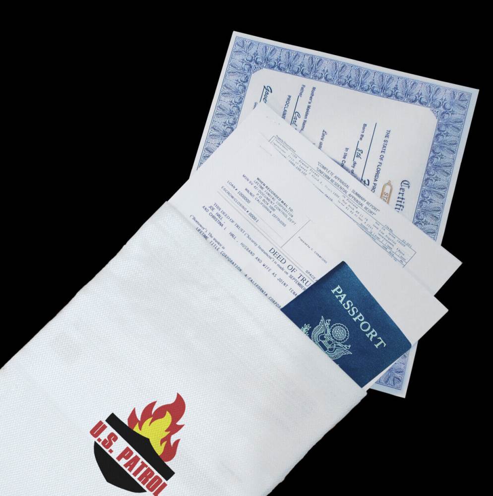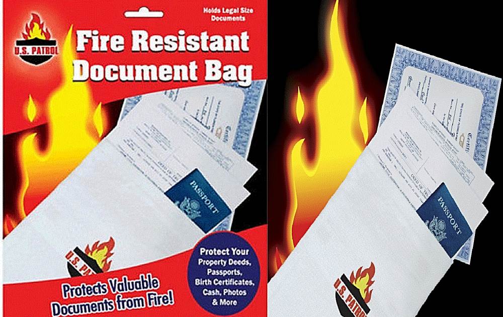 2 x Fire-Resistant Document Bag keeps those vital documents Great for passports. deeds. birth certificates. cash and more. and photos you can’t afford to lose safe from fire.
