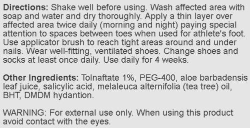 Bottle with integral brush applicator. Contains Tolnaftate.