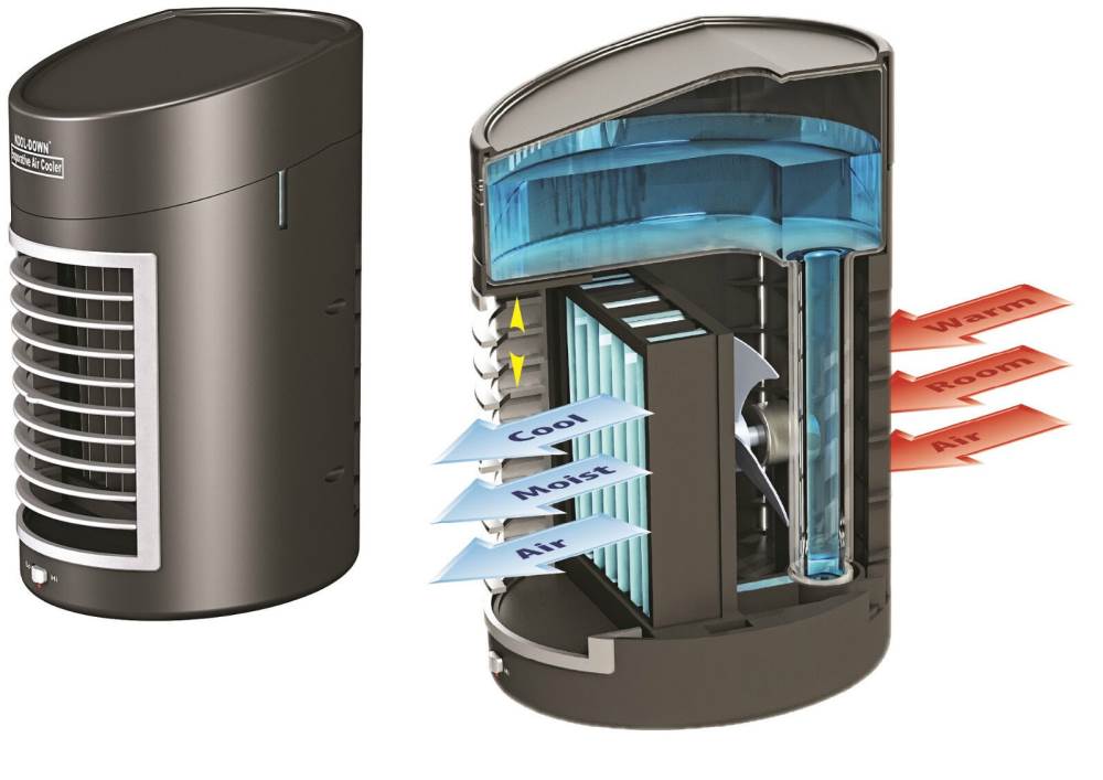 The secret behind its massive cooling power is a large removable tank that can be filled with ice and water.