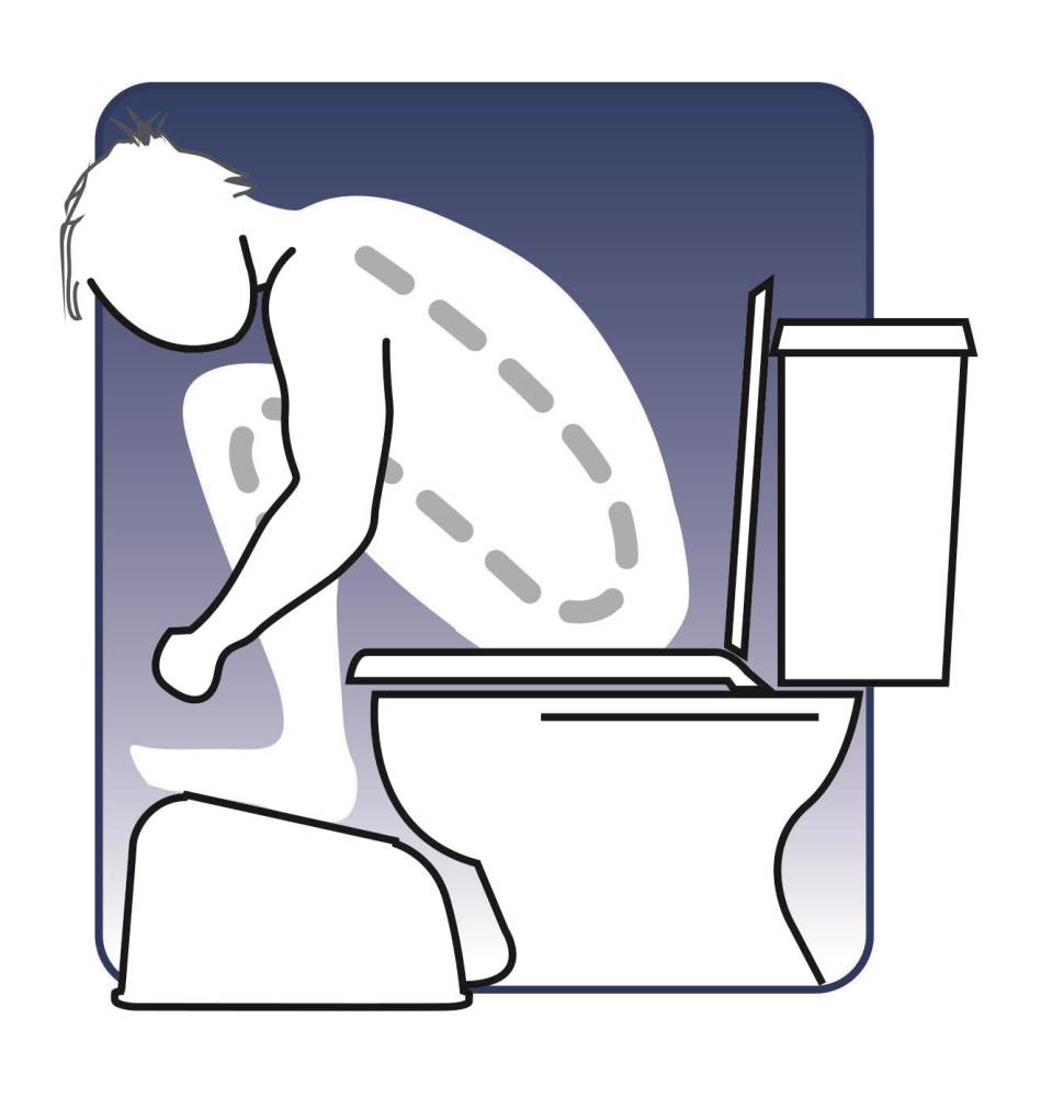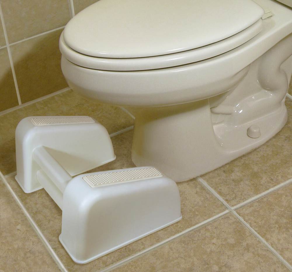 This foot stool positions your body so you are squatting when you sit on the toilet.