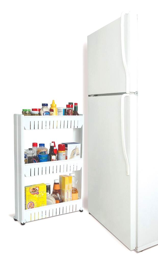 Fits perfectly between fridge and counter