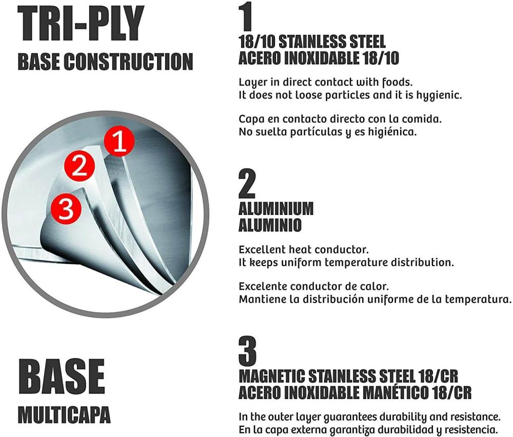 ✔ Triple layer base ensures even heat distribution