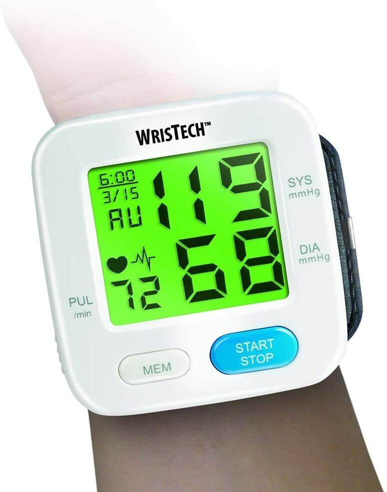This super light. portable and convenient lifesaver cuff from WrisTech lets a person monitor their blood pressure as quickly and easily as telling the time. The easy to read color digital display displays diastolic and systolic numbers along with coded colours: red. yellow and green denoting hypertension. prehypertension. and normal blood pressures respectively.